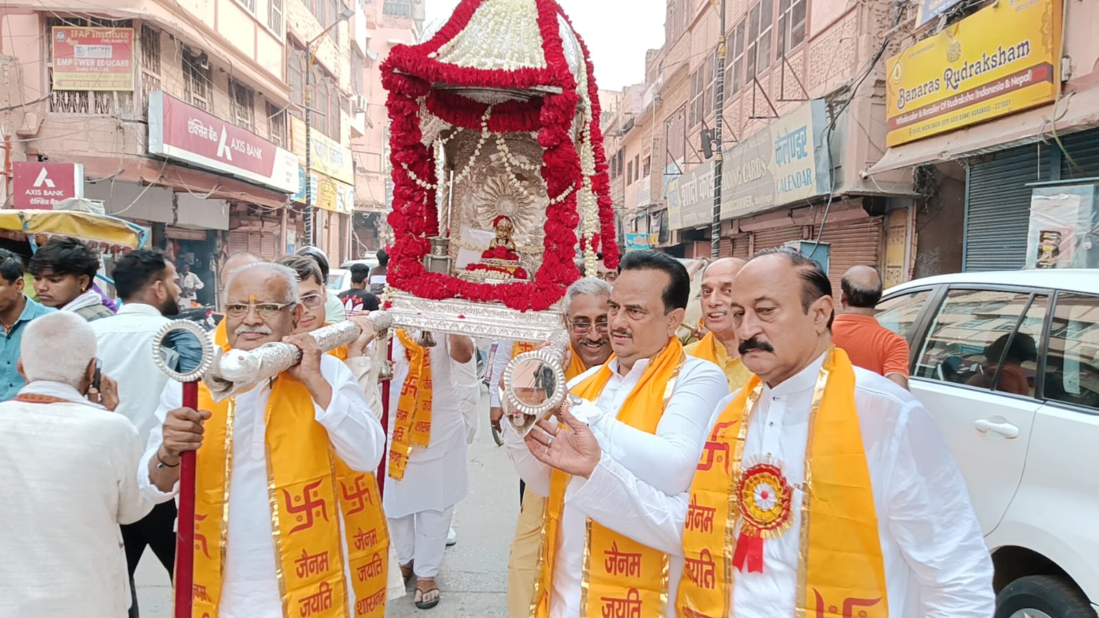 वहीं दूसरी ओर बुलानाला चौराहे से जैन समाज द्वारा भी एक भव्य शोभायात्रा का आयोजन किया गया। इस शोभायात्रा में सुसज्जित रथ, आकर्षक झांकियां और बैंड-बाजे विशेष आकर्षण का केंद्र रहे। श्रद्धालु पारंपरिक वेशभूषा में शामिल होकर पूरे मार्ग में धार्मिक उत्साह का प्रदर्शन करते नजर आए।