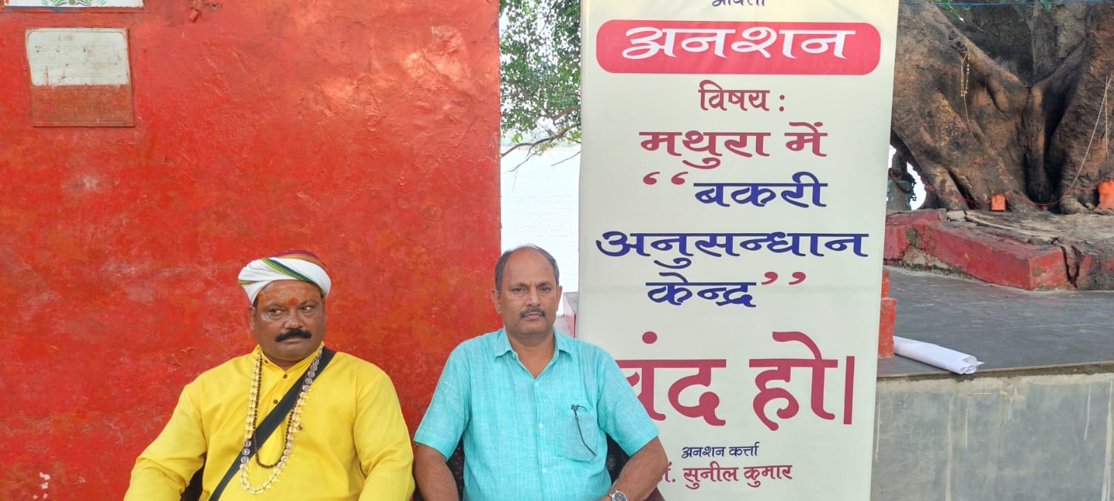 काशी हिंदू विश्वविद्यालय के चिकित्सा विज्ञान संस्थान सामुदायिक चिकित्सा विभाग के एसोसिएट प्रोफेसर डॉक्टर सुनील कुमार ने मथुरा में बकरी अनुसंधान केंद्र बंद करने की मांग को लेकर रविवार 21 सितंबर से अनशन करेंगे। अनशन हर रविवार गुरुधाम चौराहा के पास नंदी जी की मूर्ति के पास किया जाएगा। डॉ सुनील ने बताया कि बकरी से नेगेटिव ऊर्जा का संचार होता है, जिसके कारण बकरी अनुसंधान केंद्र को बंद किया जाना चाहिए। उन्होंने कहा कि इसको लेकर कृषि मंत्रालय में पत्राचार किया गया है। उन्होंने आगे कहा कि बकरी के लिए अलग लोग बना हुआ है।