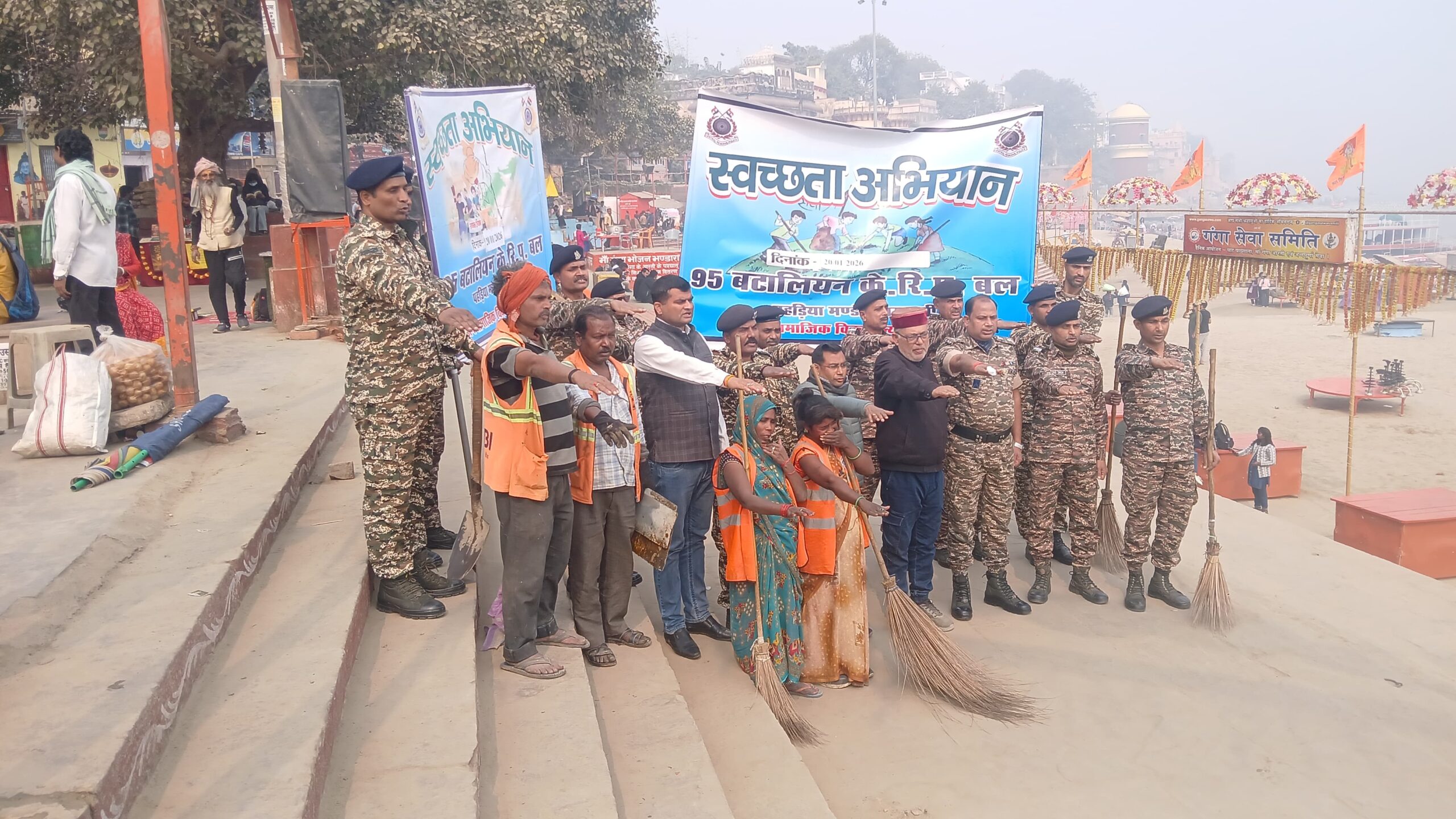 अभियान में 95वीं बटालियन केंद्रीय रिजर्व पुलिस बल (सीआरपीएफ) के जवानों ने भी सक्रिय भागीदारी निभाई। जवानों ने घाटों की सफाई करने के साथ-साथ आमजन और श्रद्धालुओं को स्वच्छता की शपथ दिलाई तथा गंगा को स्वच्छ बनाए रखने का संदेश दिया।