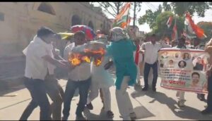 गाजीपुर। असम के मुख्यमंत्री हिमंता बिस्वा सरमा द्वारा कांग्रेस के राष्ट्रीय अध्यक्ष के विरुद्ध की गई टिप्पणी को लेकर उत्तर प्रदेश के गाजीपुर में सियासत गरमा गई है। उत्तर प्रदेश कांग्रेस कमेटी के आह्वान पर जिला एवं शहर कांग्रेस कमेटी के कार्यकर्ताओं ने जिला मुख्यालय पर जोरदार प्रदर्शन किया और मुख्यमंत्री का पुतला दहन कर अपना आक्रोश व्यक्त किया।