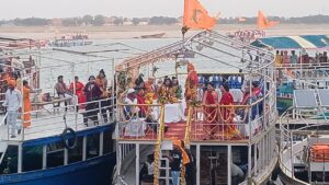 शोभायात्रा की शुरुआत परंपरा के अनुसार तुलसी घाट से हुई, जहां संकट मोचन मंदिर के महंत डॉ. विश्वंभर नाथ मिश्र ने आरती कर यात्रा को रवाना किया। विगत 39 वर्षों से चली आ रही इस परंपरा का इस वर्ष भी भव्य आयोजन किया गया। इस दौरान 30 केवट बंधुओं को साफा बांधकर सम्मानित किया गया, जो इस आयोजन की विशेष पहचान रहा।