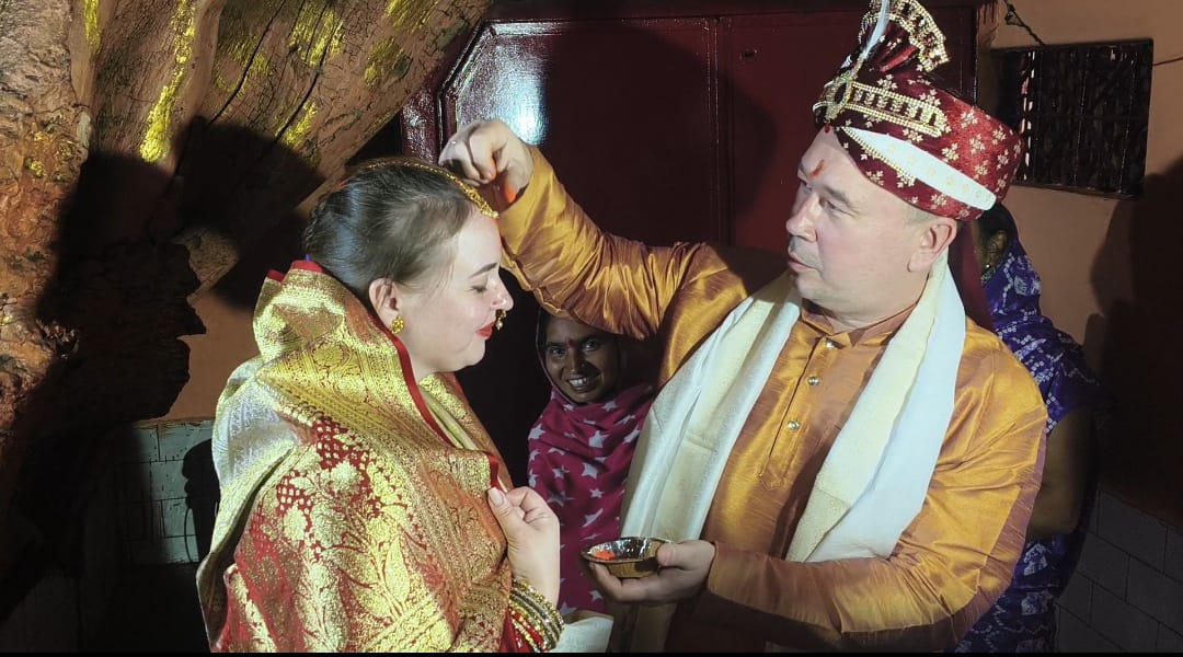 रूस निवासी मरीन (उम्र लगभग 38 वर्ष) और कॉन्स्टेंटिन मरीना (उम्र लगभग 48 वर्ष) ने मंत्रोच्चार, वैदिक मंगलाचरण और भगवान को साक्षी मानकर सात फेरे लिए। विवाह की सभी पारंपरिक रस्में जैसे जयमाला, सिंदूरदान, फेरे और आशीर्वाद विधिवत रूप से संपन्न कराए गए। इस दौरान मंदिर परिसर में मौजूद महिलाओं ने मंगल गीत गाए और काशीवासियों ने कन्यादान कर इस पावन अवसर को और भी विशेष बना दिया।