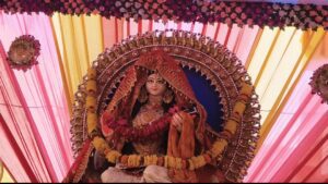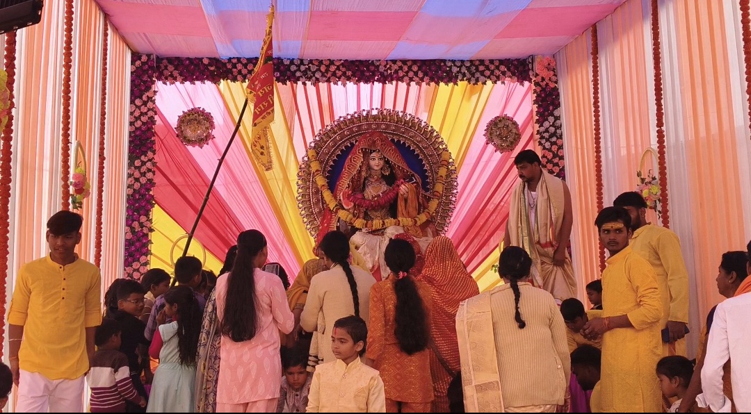 इसी क्रम में एक सरस्वती पूजा पंडाल में मां सरस्वती को चिंतित मुद्रा में दर्शाया गया है। इसके पीछे संदेश यह है कि आज के बच्चे किताबों की तुलना में मोबाइल का अधिक उपयोग कर रहे हैं, जिससे ज्ञान और संस्कार प्रभावित हो रहे हैं।