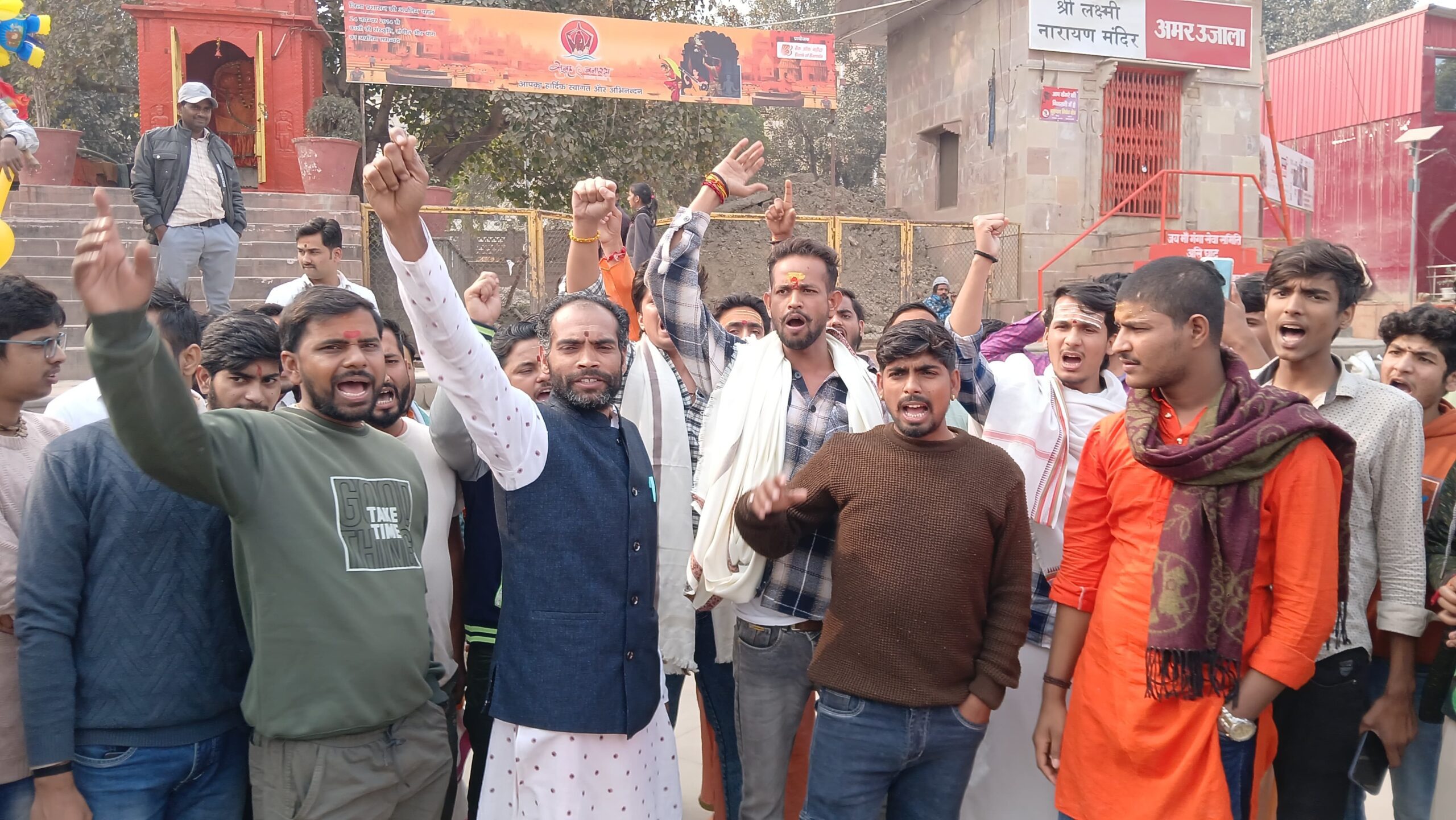 वाराणसी। अस्सी घाट पर मंगलवार को सवर्ण समाज (बटुको) के बैनर तले यूजीसी द्वारा लाए गए नियम के विरोध में सैकड़ों लोगों ने प्रदर्शन किया। इस दौरान घाट क्षेत्र “योगी मुर्दाबाद”, “मोदी मुर्दाबाद” और “अमित शाह मुर्दाबाद” के नारों से गूंजता रहा।