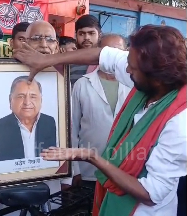 वाराणसी। सीरगोवर्धनपुर में समाजवादी पार्टी की स्थापना दिवस पर युवजन सभा के प्रदेश महासचिव अजय फौजी ने अपने खून से मुलायम सिंह यादव एवं अखिलेश यादव का तिलक किया। इस दौरान मुलायम सिंह यादव को भारत रत्न देने एवं राष्ट्रीय अध्यक्ष अखिलेश यादव को मुख्यमंत्री बनाने की शपथ ली.