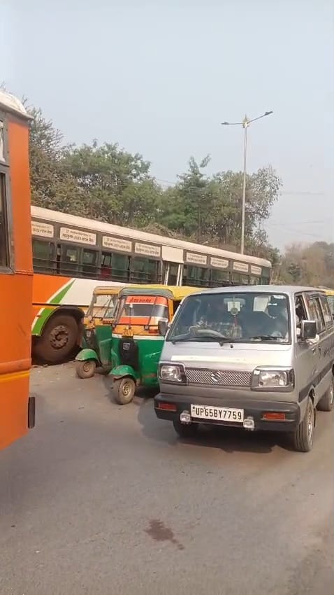 वाराणसी। चितईपुर थाना क्षेत्र के इंदिरा नगर स्थित डाफी बाईपास पर शुक्रवार को एक भीषण सड़क हादसा होते-होते बचा। वाराणसी की ओर आ रही एक रोडवेज बस को पीछे से आ रहे तेज रफ्तार ट्रक ने जोरदार टक्कर मार दी। टक्कर इतनी भीषण थी कि बस अनियंत्रित होकर डिवाइडर पर जा चढ़ी।