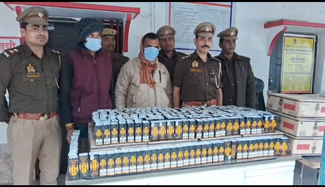 अवैध शराब: 16 पेटी ‘8PM’ अंग्रेजी शराब (कुल 768 पैकेट, प्रत्येक 180ML)।
