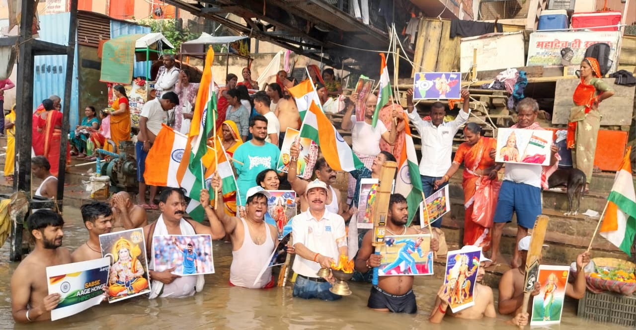 भारत पाकिस्तान के बीच होने वाले इस मैच में 140 करोड़ भारतीयों की आशा और निगाहें भारतीय क्रिकेट टीम पर है। भारतीय क्रिकेट टीम विजेता हो, देवाधिदेव महादेव और मां गंगा से आशीर्वाद की कामना की गई।
